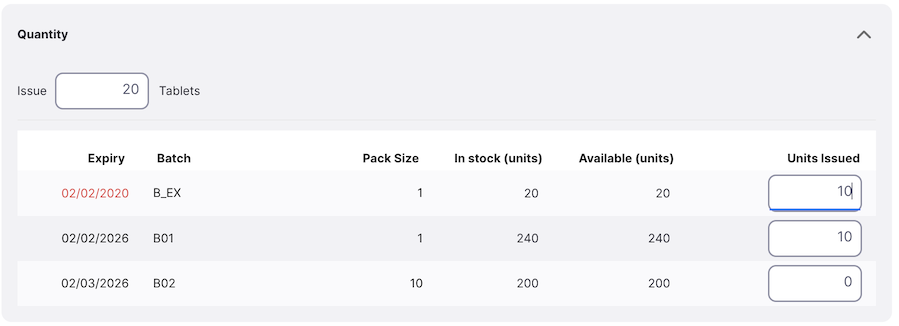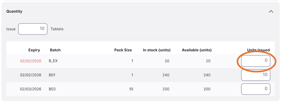 Lors de l'ajout d'articles à une prescription antidatée, le stock disponible sera ajusté à ce qui était disponible à cette date (et qui n'a pas été utilisé depuis). Les autres champs montrent toujours l'état actuel du systÚme.
