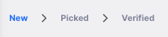 Les statuts passés sont affichés en bleu, les statuts suivants sont en gris.